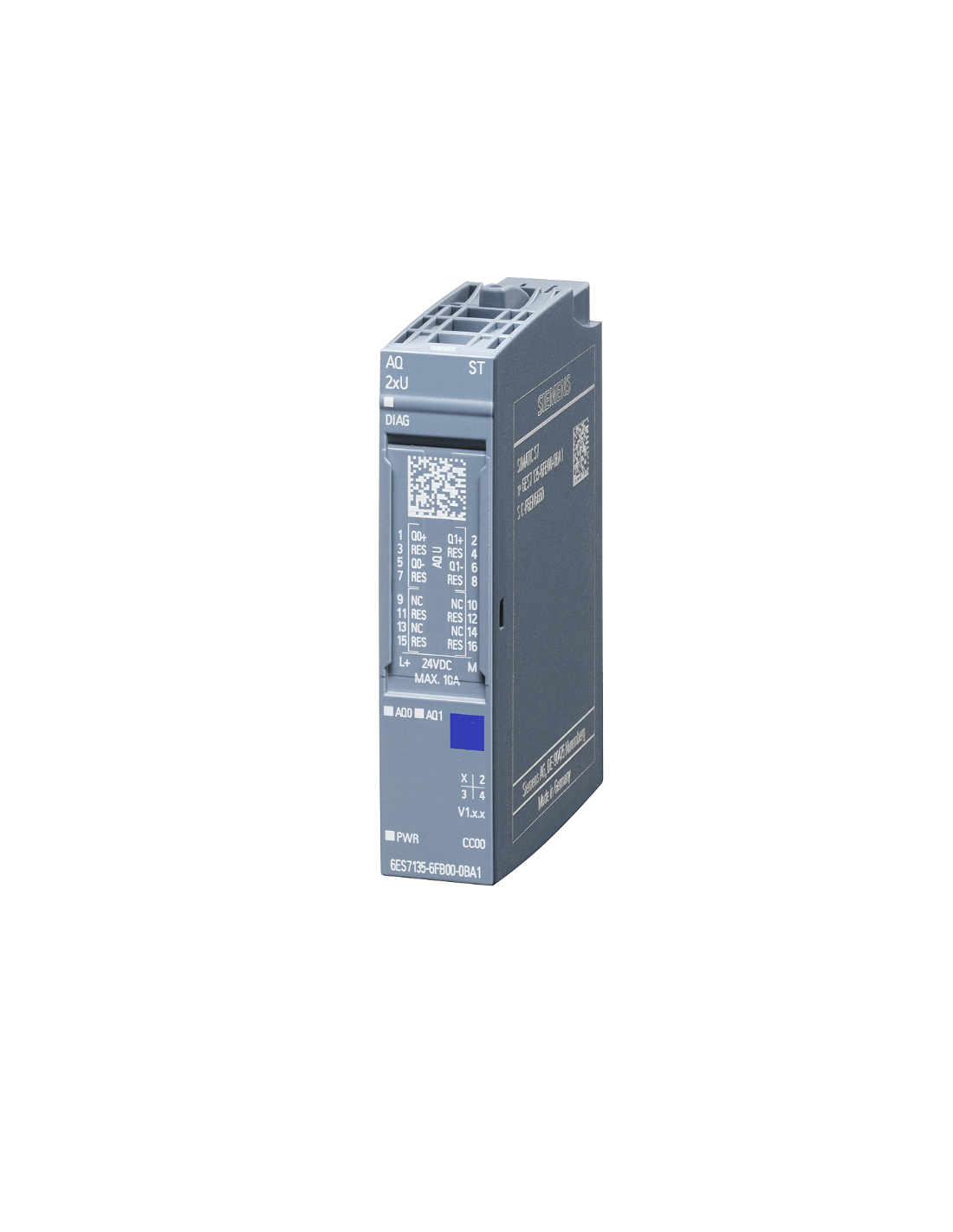 Die Peripheriemodule sind mit verschiedenen farbigen Elementen gekennzeichnet, damit der Modultyp schnell und einfach identifiziert werden kann. Das dezentrale I/O-System ET 200SP bietet eine große Auswahl an Analogausgangsmodulen, je nach den erforderlichen Funktionen. Es sind Module mit Basis- (BA) oder Standardfunktionalität (ST) mit 2 oder 4 Ausgängen sowie Module mit erweiterten Funktionen (HF High Feature / HS High Speed) mit jeweils 2 Ausgängen erhältlich.