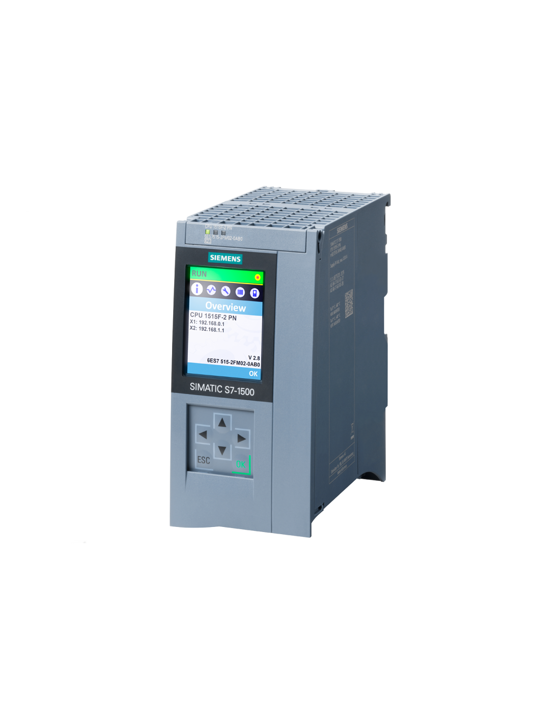 Zentraleinheit SIEMENS SIMATIC S7-1500 CPU 1515-2 PN - 6ES7515-2AM02-0AB0 , Zentraleinheit mit 500 KB Arbeitsspeicher für Programme und 3 MB für Daten, 1. Schnittstelle: PROFINET IRT mit 2-Port-Switch, 2. Schnittstelle: PROFINET RT, Leistung 30 ns, SIMATIC-Speicherkarte erforderlich.