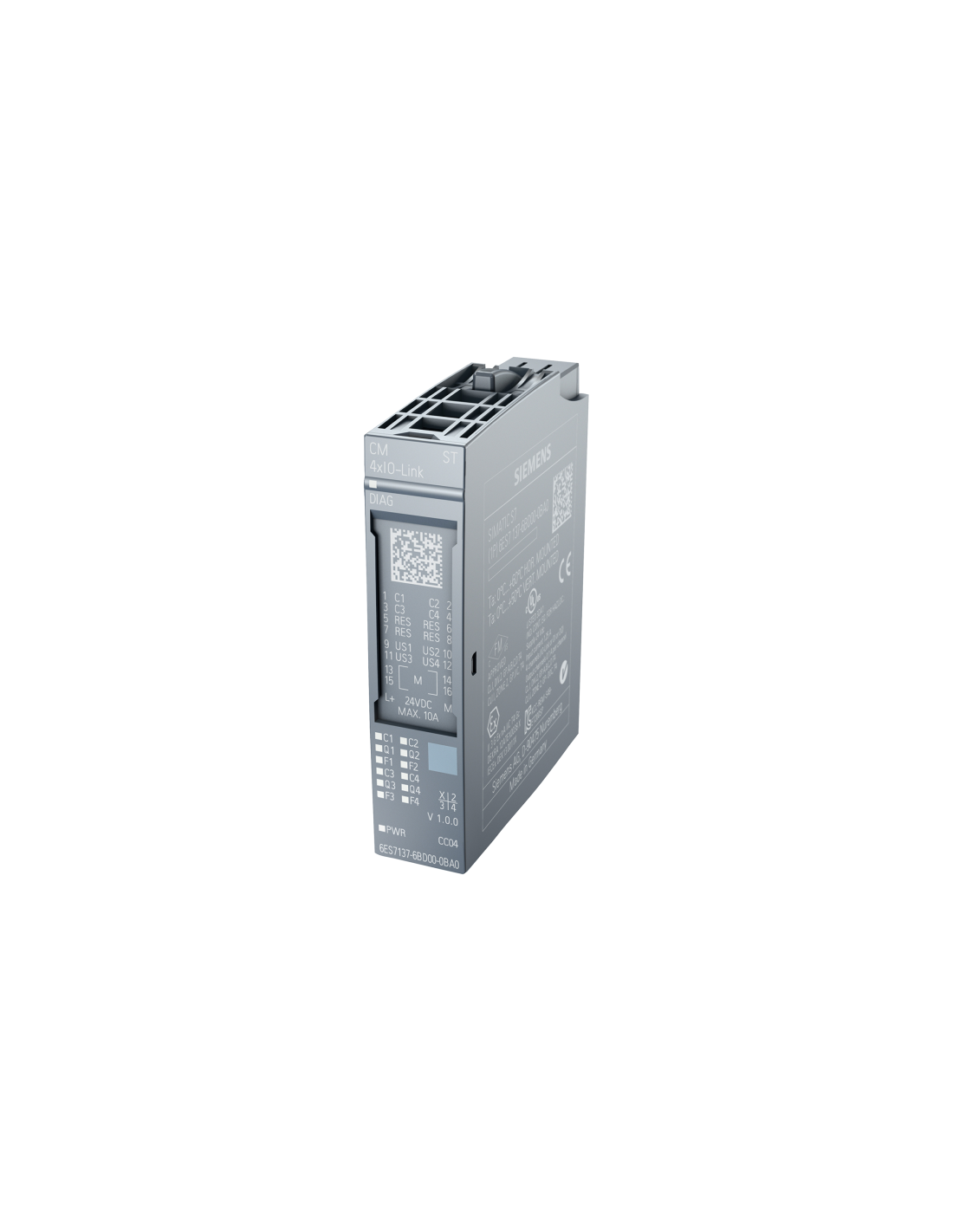 IO-Link-Kommunikationsmodul für SIEMENS SIMATIC ET 200SP – 6ES7137-6AA00-0BA0 Kommunikationssystem zum direkten Anschluss von Automatisierungselementen für Sicherheitsanwendungen bis SIL 3. Die Module zeichnen sich durch eine hohe Kanaldichte und geringe Variabilität der Komponenten aus und erweitern den Gesamtumfang der Kommunikationsmöglichkeiten durch zusätzliche Funktionen und Schnittstellen CM 4 x IO-Link ST, Farbcode CC04, Speicher für Geräteparameter 2 kB