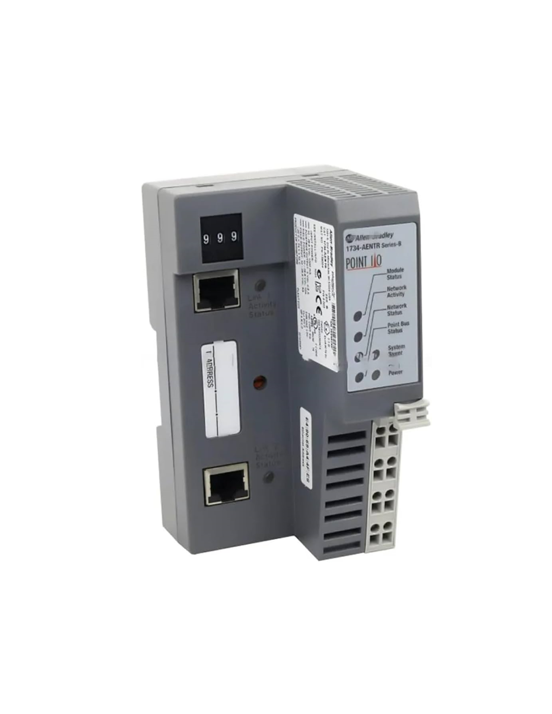 Erweiterter Netzwerkadapter – 1734-AENTR Die EtherNet/IP POINT I/O-Netzwerkkarte ermöglicht einen schnellen und stabilen Datenaustausch zwischen POINT I/O-Modulen und SPS-Steuerungen, Industriecomputern oder anderen Netzwerkgeräten. 2 RJ45-Ports 10/100 Mbps (umschaltbar).